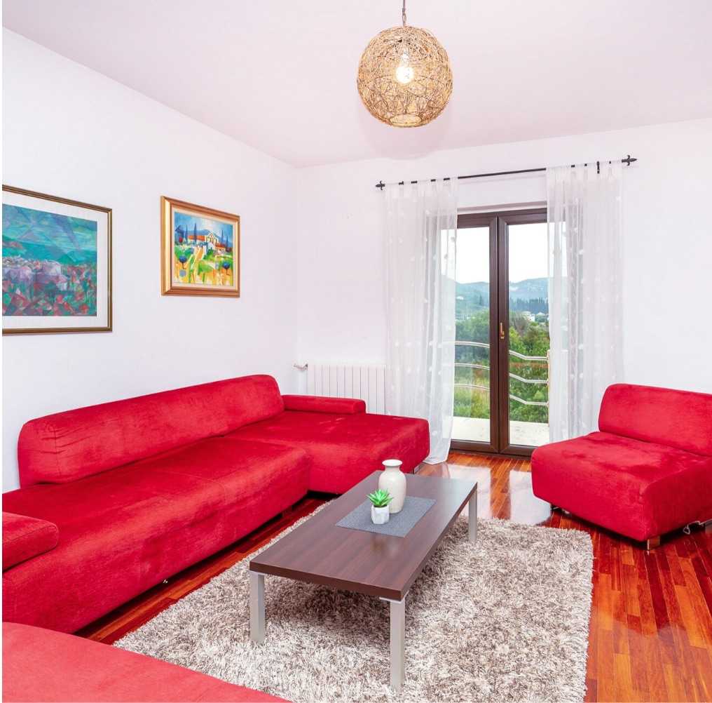 In a quite neighbothood just 9 km from Dubrovnik's historic center, easily reachable by local bus you can find our Mediterranean Villa. 200 sqm space over two floors,featuring 2 spacious living rooms, fully equipped kitchen, four bedrooms, along with a Jacuzzi-equipped bathroom. 300sqm of outdoore space includes a patio, alfresco dining area,gardens and a swimming pool. With a private parking and picturesque views, it's the perfect blend of comfort and convenience for your Dubrovnik getaway.