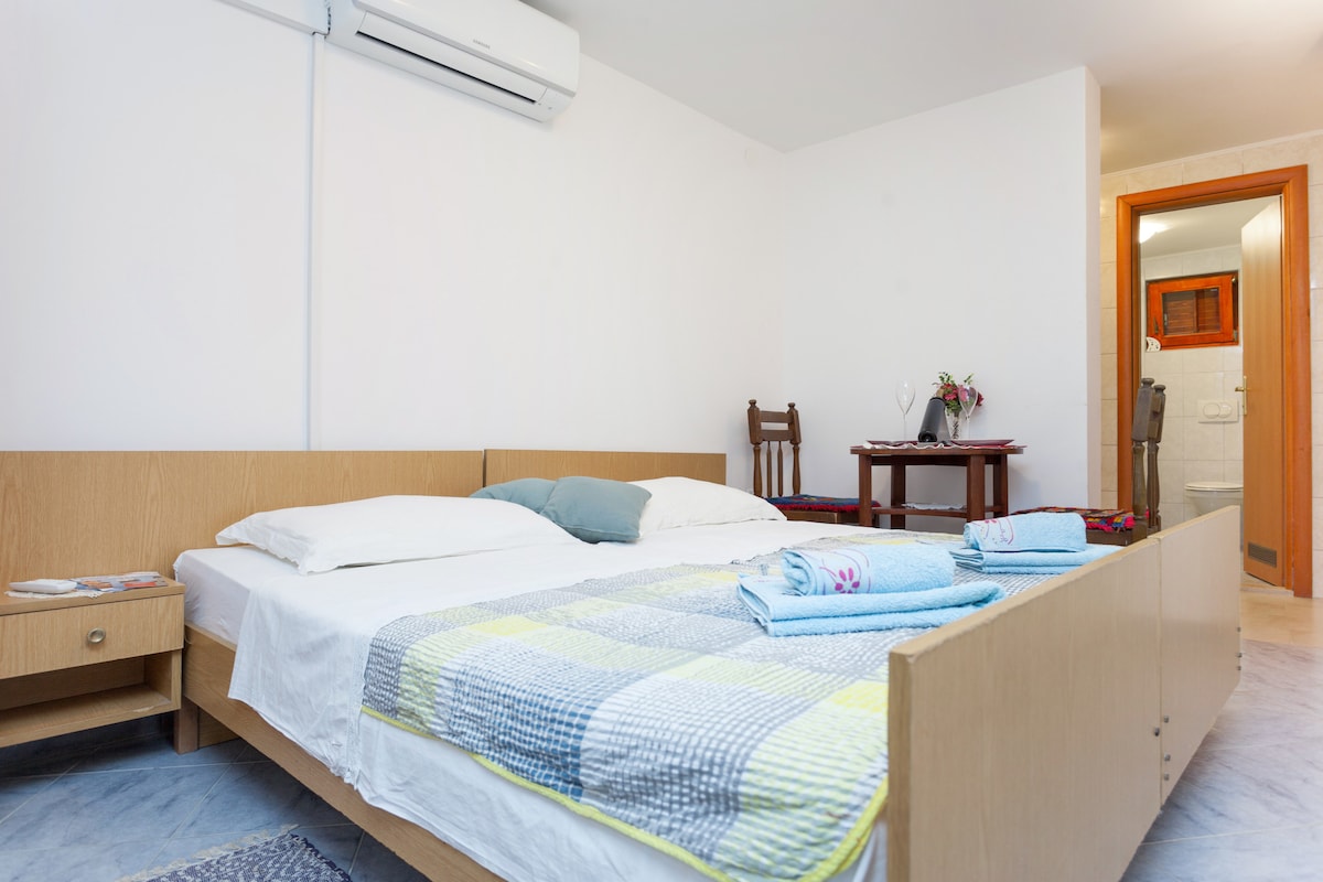 We have 2 studio apartments and one apartment. They all have their own terrace which you can enjoy eating breakfest and drinking coffee in the morning with a beautiful sea view. You have your own parking lot in front of the house. Each apartment has kitchen, bathroom, air conditioning, free wi-fi, TV.