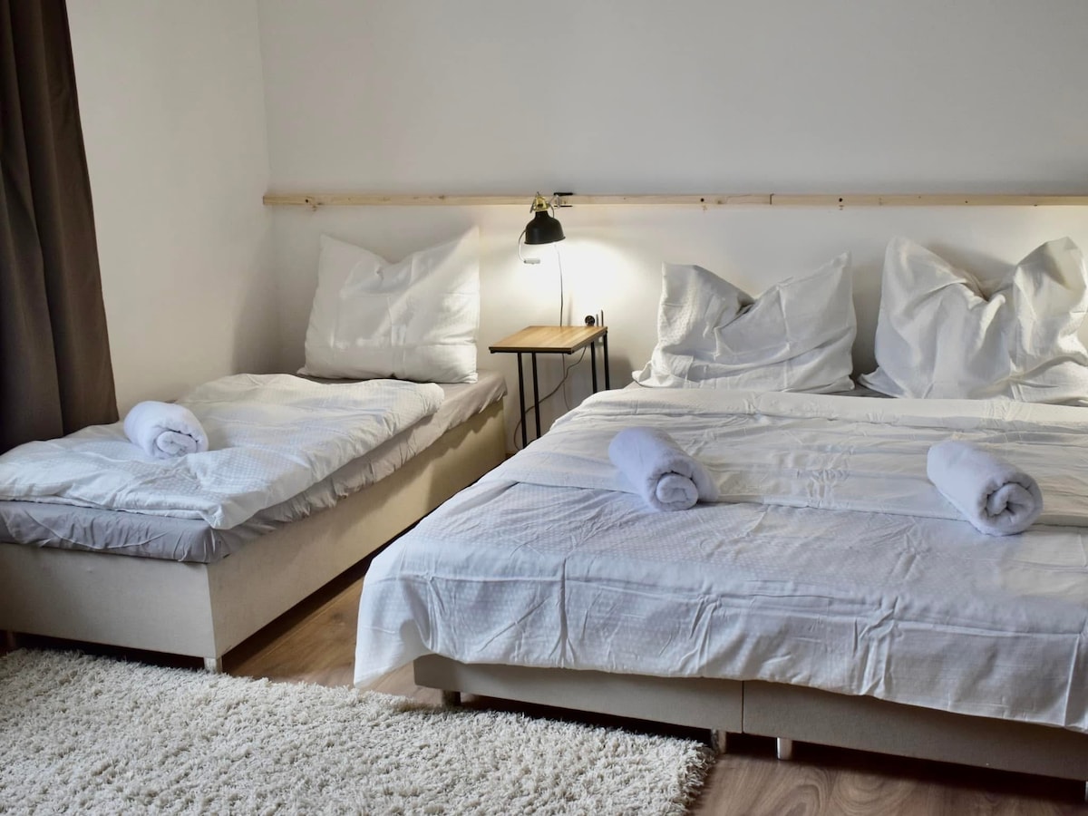 Feel like at home in middle of a friendly neighborhood in a renovated apartment. Located just a few minutes from the town center. The 50 m² apartment comes with one king size bed which can also be separated in two beds, extra sofa bed, Nespresso coffee machine, radio, electric stove, Smart TV with Netflix, big refrigerator, fast internet WiFi, a balcony and free parking spot.