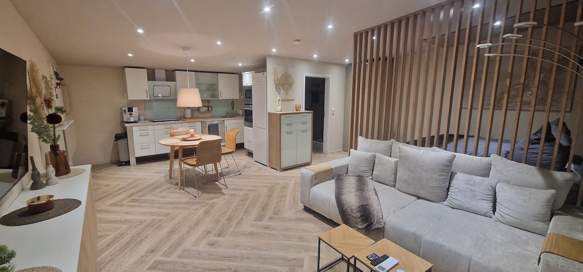 Nice 80qm flat at the ground floor, completely new built in 2018, with Sauna, backyard, fire place, bathroom with bathtube and big shower and completely equipped Kitchen. Very central, 2 min. to subway, 5 min. to all restaurants/ shopping centers and the lovely historic city of Oberursel, 10 min. along the Urselbach(little creek) to the swimming hall . Frankfurt/M. 10 min. by car or 20 min. by subway. Oberursel is directly located at the Großer Feldberg with lots of excursion possibilities.