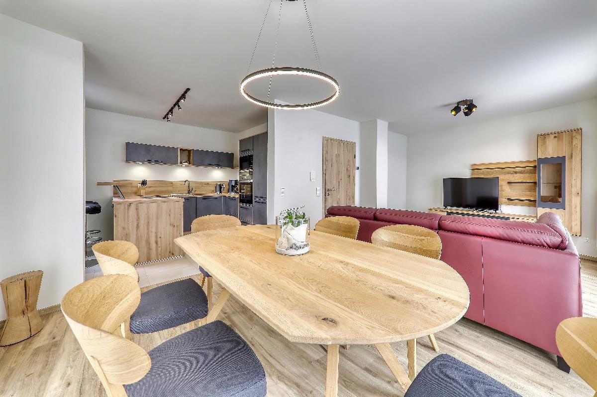 Our house lies 3 km from Nýrsko, on the quiet edge of Hodousice village, surrounded by forests and meadows – perfect for relaxing and enjoying nature. It can host up to 27 guests in 4 apartments with 8 bedrooms, 5 bathrooms, 4 kitchens and 3 cozy living rooms. There’s also a large lounge with fireplace, tables for shared meals and a children’s corner. Outside you’ll find a garden with terrace, barbecue and playground – ideal for family time outdoors. Pets are not allowed.