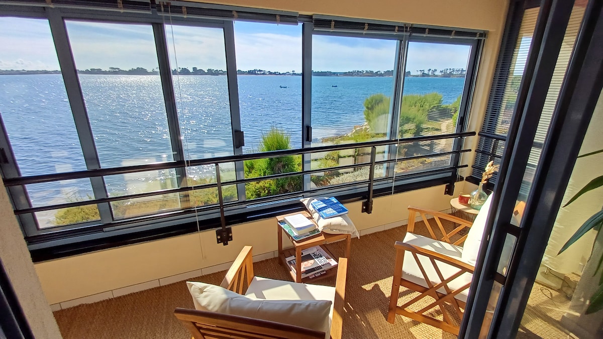 Détendez-vous dans ce joli petit APPARTEMENT entièrement rénové Un séjour inoubliable et unique. Très jolie vue, sur la baie, sur la plage. Idéalement situé, très recherché à BIGNOGAN-PLAGES Disposant : - Au Rez de chaussée, d un jardin, clos, (Aménagé façon Patio) - Au 1er étage Une Jolie pièce : Vue latérale mer - Cuisine entièrement équipée - Salon De 2 Chambres -1 Chambre lit de 160 -1 Chambre Double avec deux lits Une salle de douche et Toilettes Parking gratuit dans la propriété .