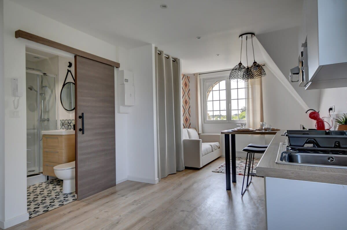 Bienvenue dans un Cocon Urbain, idéalement situé pour explorer la ville, à deux pas de la gare et de toutes ses commodités, la chambre principale offre un confort douillet et une atmosphère relaxante. La salle de bain moderne est équipée de tout ce dont vous avez besoin, des serviettes de bains aux articles de toilette essentiels. Dans la cuisine vous trouverez tout le nécessaire pour préparer vos repas avec un coin qui peut également servir d'espace de travail. Réservez dès maintenant!