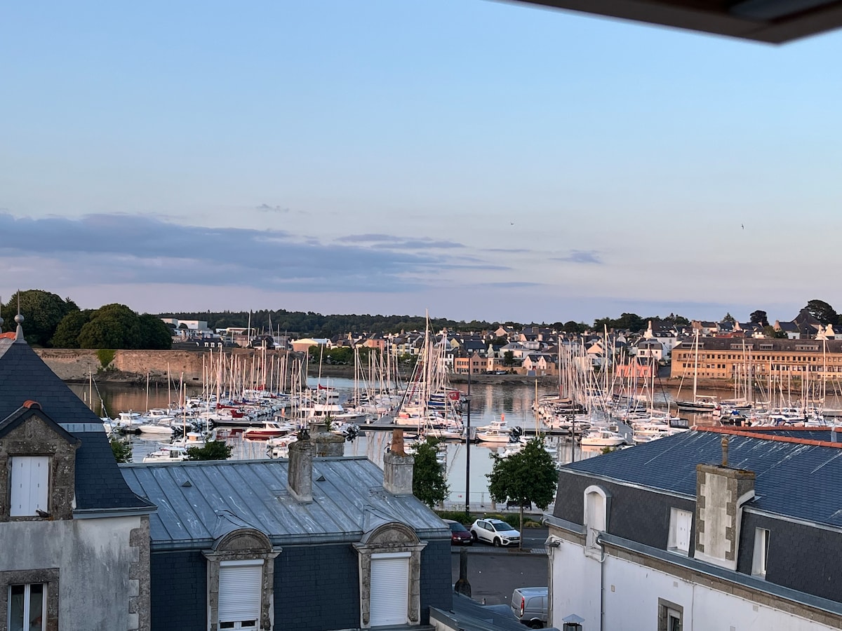 L'appartement est très lumineux et offre une vue imprenable à 180° sur la baie de Concarneau. On découvre les iles des Glénan entre la pointe de Trévignon et la pointe de Beg Meil. Il est idéalement situé à 2 pas de tous les commerces, des restaurants, des plages, sans en subir les nuisances. L'ambiance est cosy plein de charme avec sa belle verrière style atelier. Le plus que vous apporte ce logement c'est le garage, l'été le centre ville est payant.