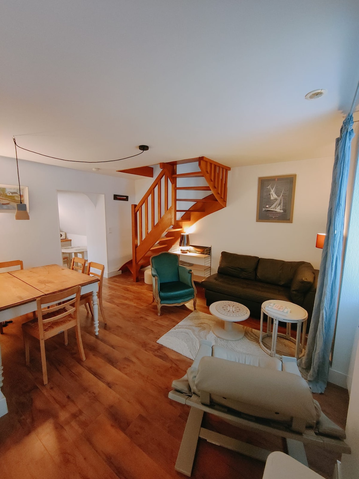 Idéalement située à 1, 8 km du charmant port de Lesconil et de la grande plage des sables blancs. Pièce à vivre, cuisine ouverte, salon/poêle à bois, canapé-lit, salle d’eau : douche et toilettes. Etage sur mezzanine, l' escalier pour y accéder est raide, avec 2 lits (90x200). Les lits sont faits à votre arrivée pour des vacances reposantes et ressourçantes. Possibilité de déjeuner/dîner dehors dans la cour partagée de ce corps de ferme breton (exposée sud). Kit bébé à disposition sur demande.