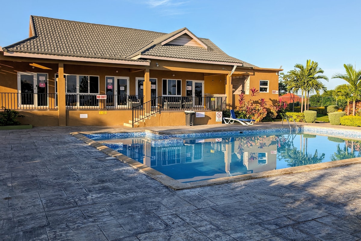 Escape to our inviting home nestled in the heart of Trelawny, Jamaica. Our pristine, modern 2 bedroom, 2 bathroom home is the ideal retreat for couples, families, or groups of up to 6 people in search of both comfort and style. Located within the secure gated community of Stonebrook Manor, our home is your gateway to a truly relaxing vacation with access to a refreshing pool, a fully-equipped gym, and top-notch amenities, complemented by stunning ocean views. We can't wait to host you!