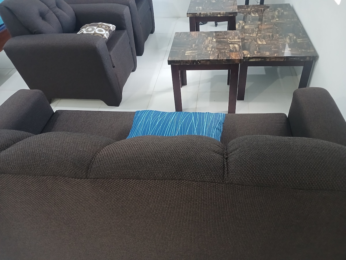 This Airbnb is a classic studio apartment, sporting an open concept living area, one bedroom, bathroom, dining and kitchen as well as a laundry section. It also facilitates basic living needs in a secure gated community.