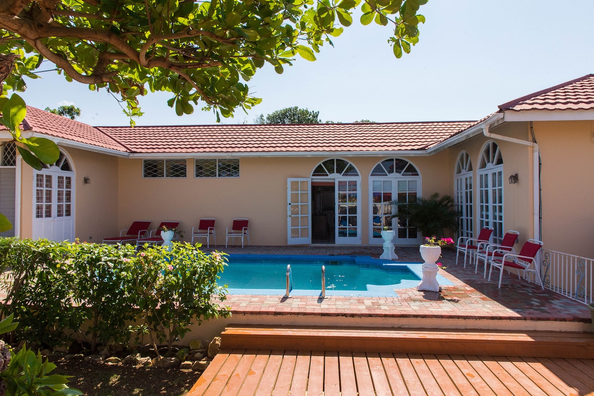 🌴✨ Luxurious Ocean View Retreat in Paradise! 🌊 🏖️Up to 10 guests included! Relax with your loved ones in this stunning 3BR/3BA ocean view villa, nestled in an upscale gated community. Enjoy easy access to 🏝️ beaches, 🍽️ restaurants, and attractions, all just minutes away. Be pampered with complimentary beach access and breakfast 🍳for 10 guests, featuring authentic Jamaican and continental options. With a fully equipped, stylish space, all you need to do is pack your bags and unwind! 🧳💖