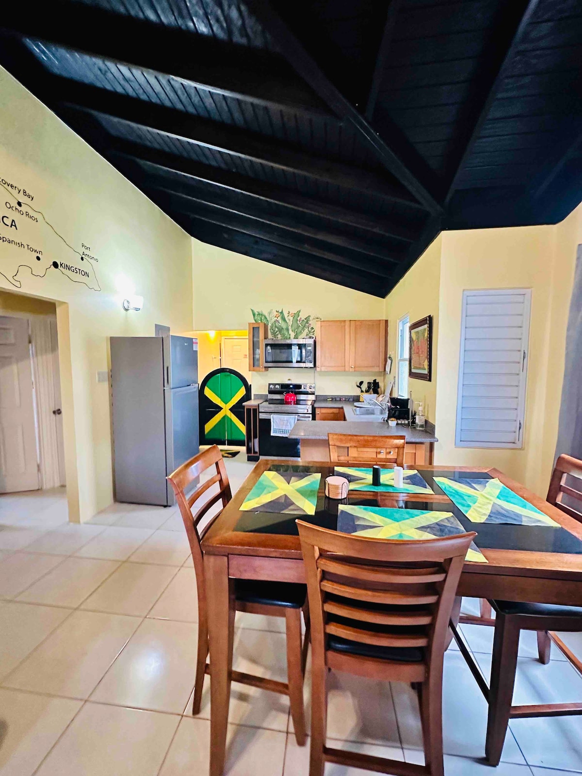 Expect an Authentic Experience high in the mountains of Jamaica: Imagine waking up to the gentle sounds of nature, the fresh mountain breeze carrying the scent of ripening fruits and morning dew over rolling farmland. Nestled in the lush, green hills of Trelawny, this two-bedroom, two-bathroom home offers a perfect escape into nature, and authentic rural Jamaican