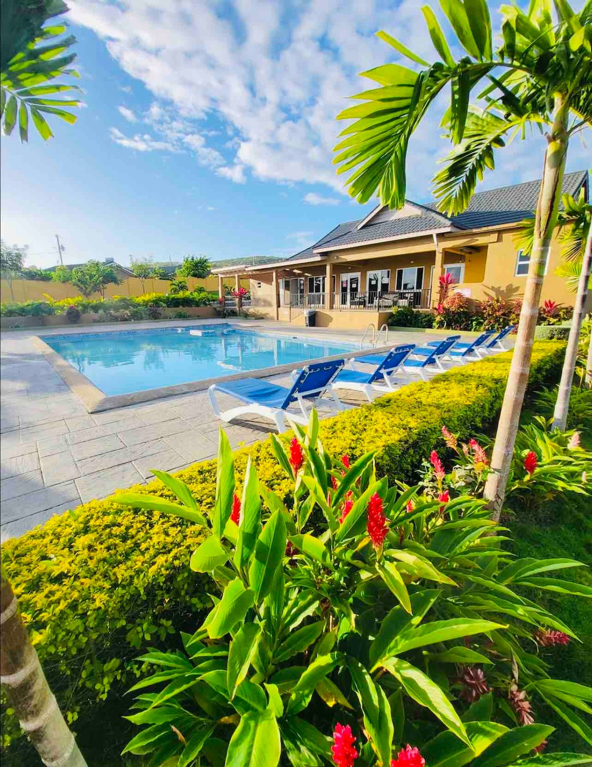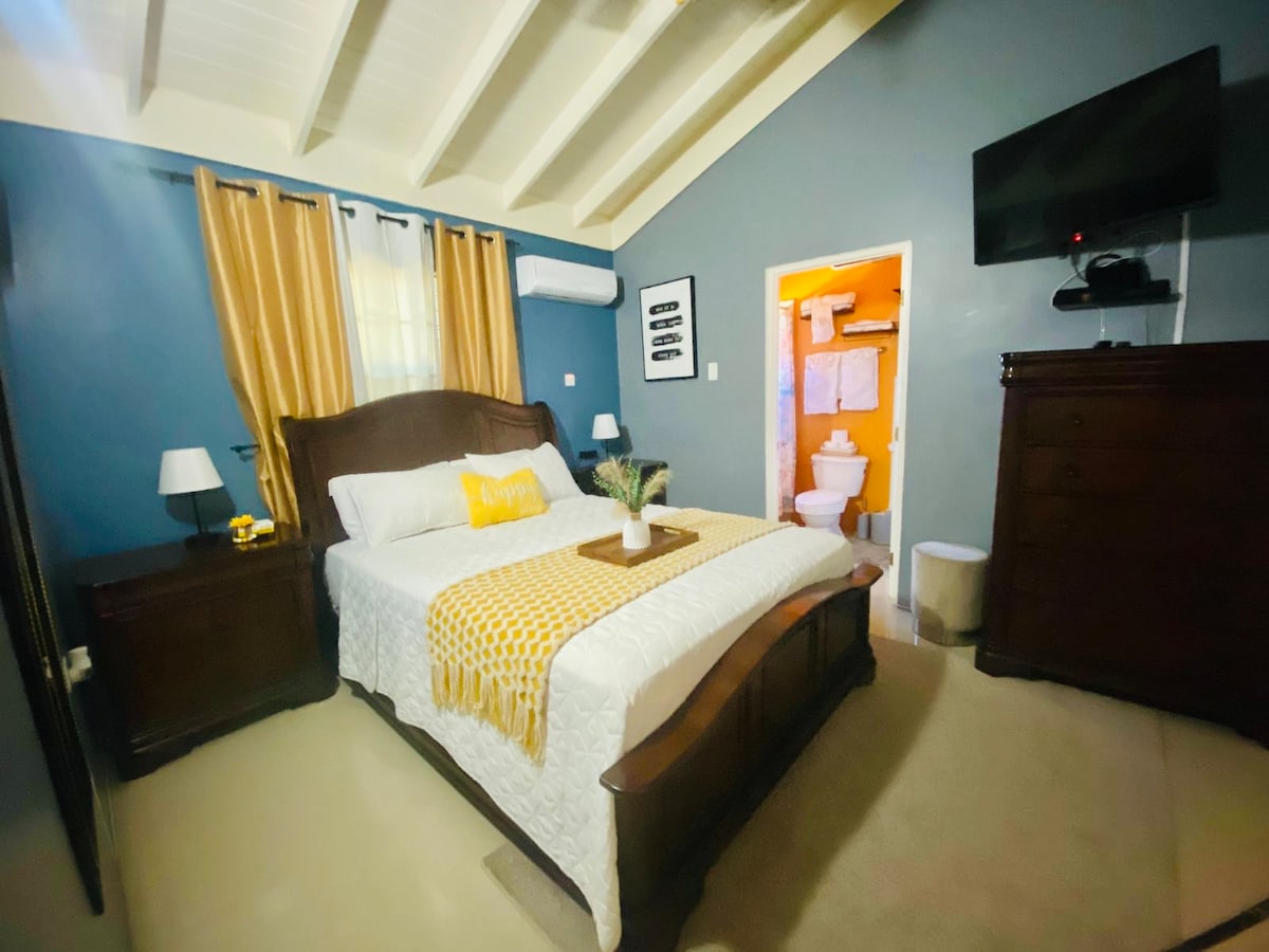 Forget your worries in this spacious yet cozy, serene space. Located in a safe, gated community with a huge pool and fully equipped gym; perfect amenities to bring your vacation to life! Wake up from your plush king sized bed to a fresh brew of the exotic Jamaican Blue Mountain Coffee ☕️ and remain connected to your favorite platforms with reliable Wifi. Only 10 minutes from the beach 🏝 with views of the sea 🌊 right from the back yard.