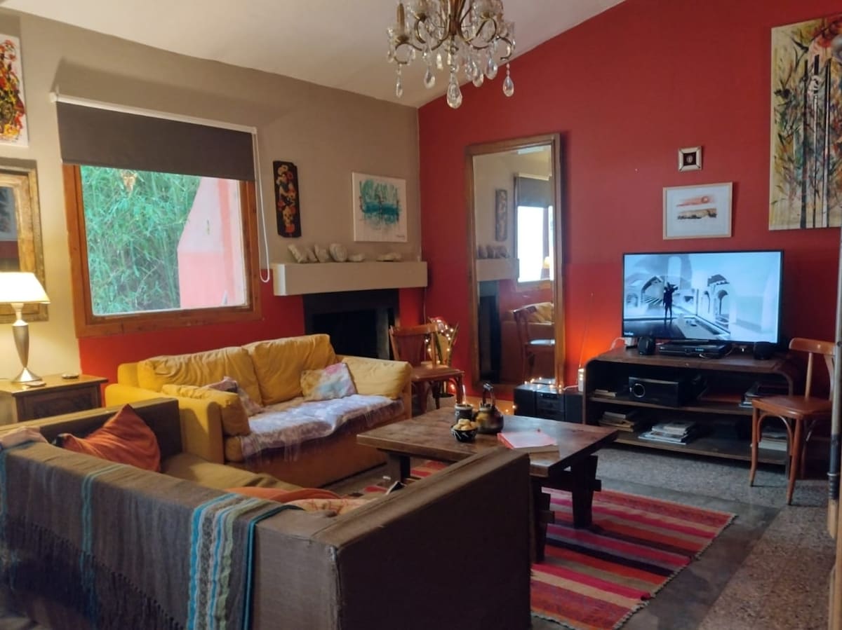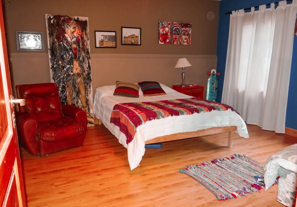 Alojamiento en casa de Artista. Paula abre su casa para alojarte en un espacio único lleno de arte y detalles que te sorprenderán en cada lugar. Habitación en Planta Baja con baño para uso exclusivo de los huéspedes.Baño Privado. Cuenta con wi fi gratuita, parrilla, jardín con frutales y terraza. Cocina compartida donde podrán degustarse exquisitos desayunos caseros , comidas por un coste adicional