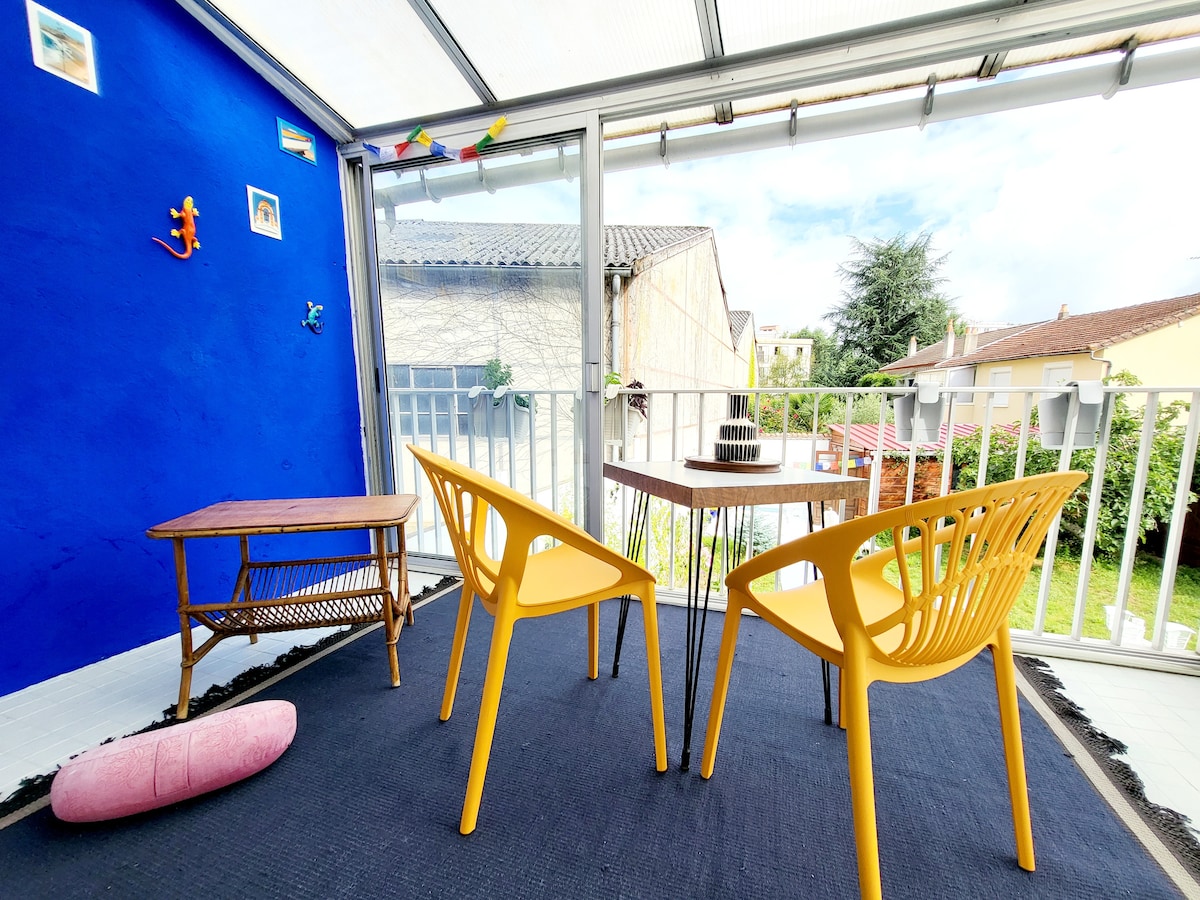 Maison avec jardin à 50 m de l hopital, 400 m de la clinique du parc et 500 m du centre ville. Jardin privatif, cuisine équipée, une chambre, douche à l italienne, Chauffage électrique individuelle, climatisation, acces wifi gratuitement sans limitation. Micro onde, télévision, plaque induction, cafetière expresso à capsule, bouilloire électrique, grille pain, presse agrume...