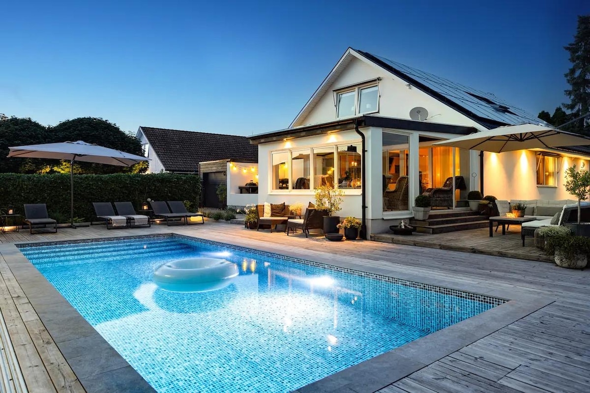 GÄSTFAVORIT 🌺 Nybyggt hus i Vellinge med stor uppvärmd privat pool (31 °C ), trädgård med grillplats och utekök samt en stor lekplats ett stenkast ifrån. Rymligt kök och sociala ytor för familj och vänner med ett barnanpassat lekrum. Fri parkering för 4 bilar och låd elcyklar att låna. Nära strand och natur – ca 10 min till Klagshamn, 12 min till Kämpinge, 15 min till Skanör och Malmö city. Busshållsplats 3 min från huset Välkomna, Perfekt villa för en avkopplande semester!