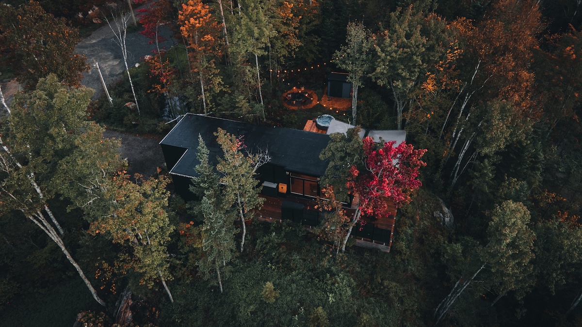Welcome to La Khabine! This cozy, modern cabin comes with all you need to relax and connect with nature. Enjoy a glass of wine with the sound of a crackling fire in the wood burning fireplace. Take in the view of the forest through the surrounding floor to ceiling windows. Relax in the private outdoor cedar barrel sauna. Natural self-care products, firewood, laundry soap, and high-speed Wi-Fi are all complimentary. We hope you'll love our little cabin of windows as much as we do :)