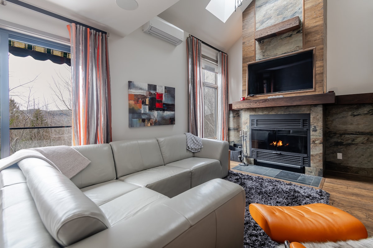 Take it easy at this unique and tranquil getaway. Located directly on the slope. BEST SKI-IN/SKI-OUT IN TREMBLANT. This one bedroom condo with Air conditioning (Queen size bed) and a Wood fireplace can easily fit 4 persons and is well equipped to welcome any outdoors lovers. For the SKI-IN/SKI OUT note that there is about 50 steps from the condo down to the Chalumeau trail to start or come back from your ski day. CITQ #295941