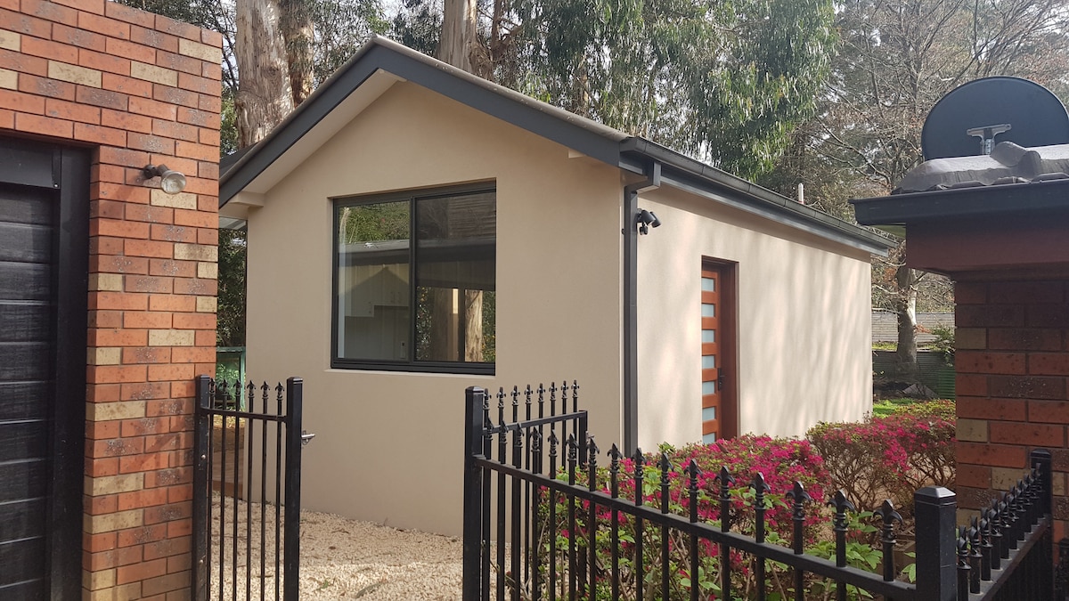 Detached 1 bedroom unit (queen bed) with en-suite bathroom. Fully equipped kitchen, seperate living and dining rooms. Tea & coffee supplied to get you started. Wifi, TV, DVDs & books. Easy 15 min walk to cafes, shopping centre and trains. Busses are at the end of street. Easy access to the Dandenong Ranges, Puffing Billy, Sherbrooke Forest and much more. The unit is in our back yard with a gate to access the native reserve with several walking tracks.