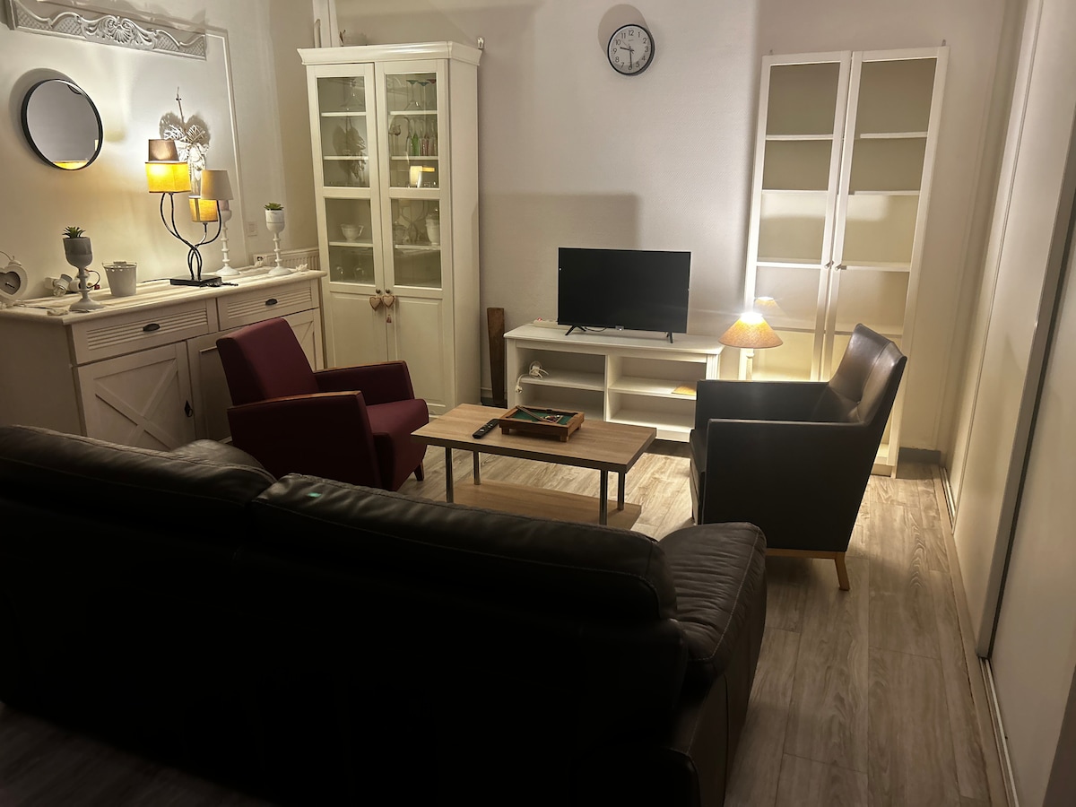Rare Ce n'est pas un dessous de toit rénové en appartement, sombre et mal isolé pour mourir de froid et sans vu sur l'extérieur Confortable T2 de plein pied cosy de 60 m² entier plein centre bourg et de plein pied (refait 2025) salon confort Canapé, 2 fauteuils, rangement, tv, table et4 chaises cuisine équipé + lave Linge Chambre Lit 2 places, grand dressing salle d’eau parking privée wifi et animal accepté interdit de le laisser seul Vis sur place indiqué nombre de personnes réservation
