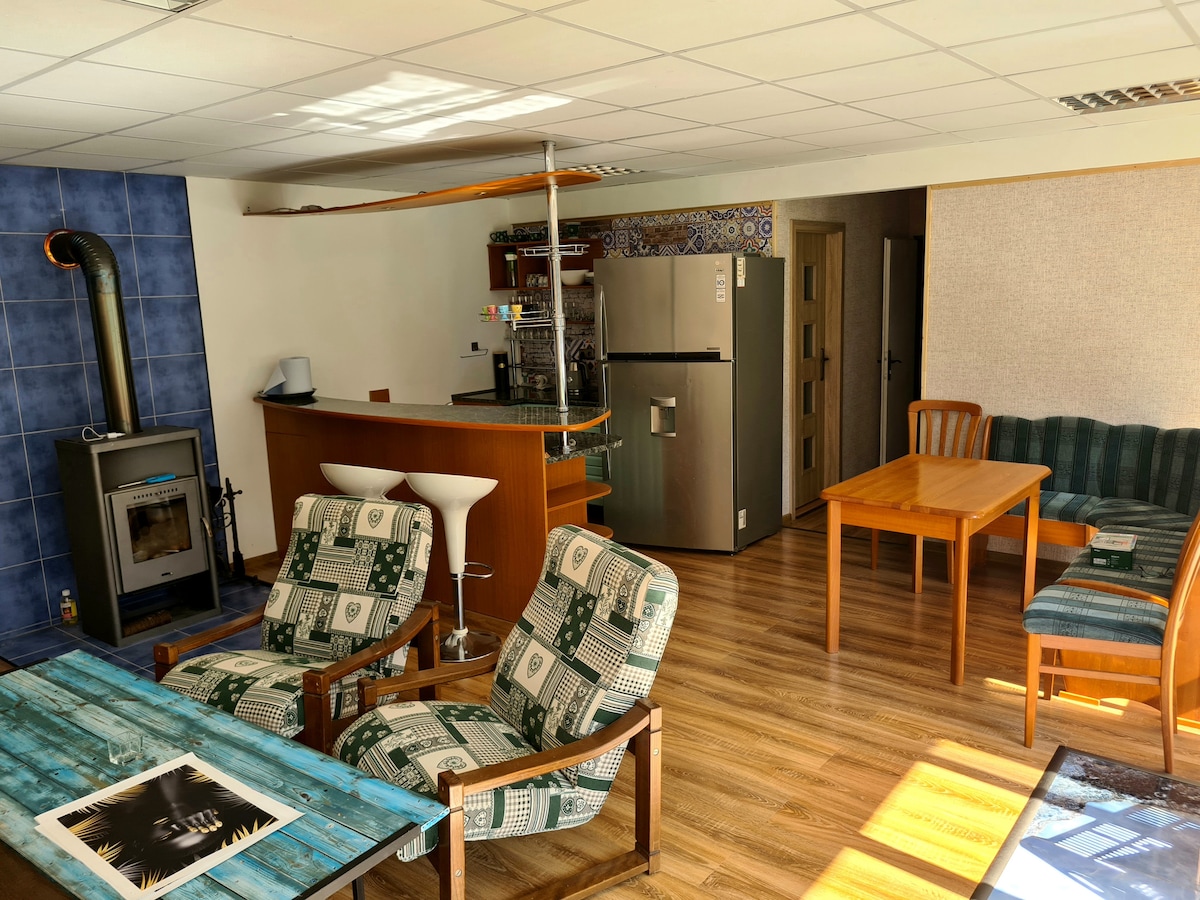 Milí priatelia prírody a milovníci vintage štýlu, s hrdosťou vás pozývame objaviť kúzlo spojenia moderného komfortu a starosvetského šarmu v našom novopostavenom bývaní. Ponúkame vám exkluzívnu prehliadku tohto jedinečného priestoru, ktorý je dokonalým únikom od mestského zhonu a ponúka pokojné útočisko v náručí vidieku. Objavte Krásu a Funkčnosť Našich Priestorov: Štyri útulné izby: Navrhnuté tak, aby poskytovali pohodlie a súkromie pre až osem hostí. Celopresklená spoločná miestnosť