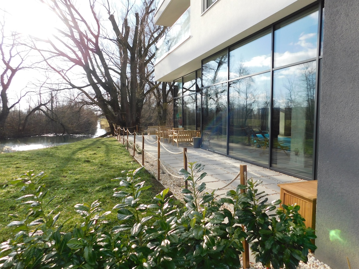 Exclusive 3-bedroom residence in Piešťany with breathtaking river views and wrap-around terrace. Each bedroom opens to the terrace. Spacious living room, dining table for six, 3 bathrooms, 2 parking spaces, and a modern kitchen. Guests may also access a small swimming pool and sauna in the building (for an extra fee). Perfect for families, spa visitors, or business travelers seeking luxury and tranquility.