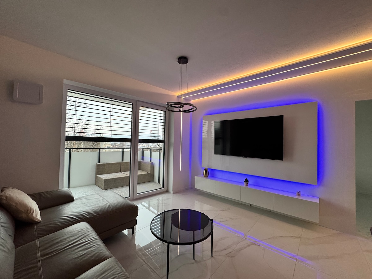 Apartmán v širšom centre mesta Trenčín s moderným vybavením, ktorý poskytne príjemné prostredie pre váš pobyt. Apartmán ponúka dve spálne s manželskými lôžkami, obývačku, moderne vybavenú kuchyňu s umývačkou riadov a so vstavanými spotrebičmi, kúpeľňu so sprchovým kútom a wc. Platené parkovanie je dostupné priamo v mieste apartmánu - 0,50€/hod, 4,50€/deň. S možnosťou bezplatného parkovania 10minút od apartmánu. Do centra mesta sa dostanete pešou chôdzou za 5-10 minút.