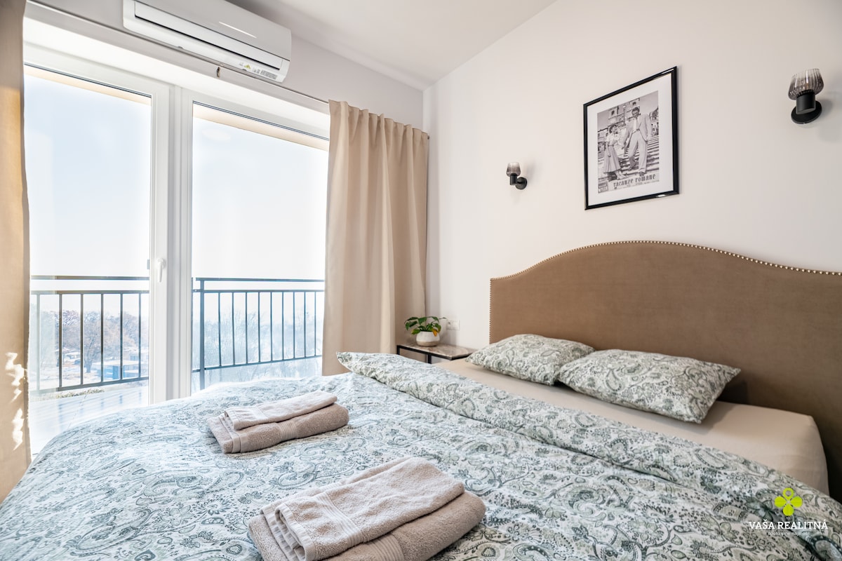 Krásny apartmán Muška ponúka elegantné a útulné ubytovanie s priestrannou lodžiou, ideálnou na rannú kávu či večerné chvíle pokoja. Je vhodný pre jednotlivcov, páry, páry s deťmi, ktorí hľadajú pohodlie, oddych, súkromie a príjemnú atmosféru s nádychom luxusu a romantiky pre každého. Nachádza sa v tichej lokalite s výbornou dostupnosťou, iba 2km do centra mesta. 300 metrov od apartmánu sa nachádza obchodný dom Billa a kúsok ďalej príjemná reštaurácia s bowlingom.