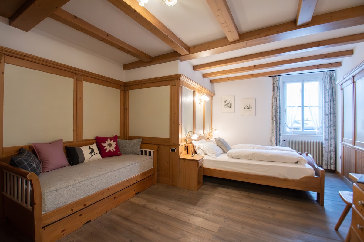 Room of about 22 square meters with double bed, balcony with panoramic view of our mountains or the valley. Larch floor and natural fir furniture. Private bathroom with window, shower and hairdryer. Possibility of adding a third bed (stay allowed with max 1 child) It is equipped with a safe, minibar, kettle with selection of teas and herbal teas, telephone, open bathroom with shower, separate toilet and bidet.