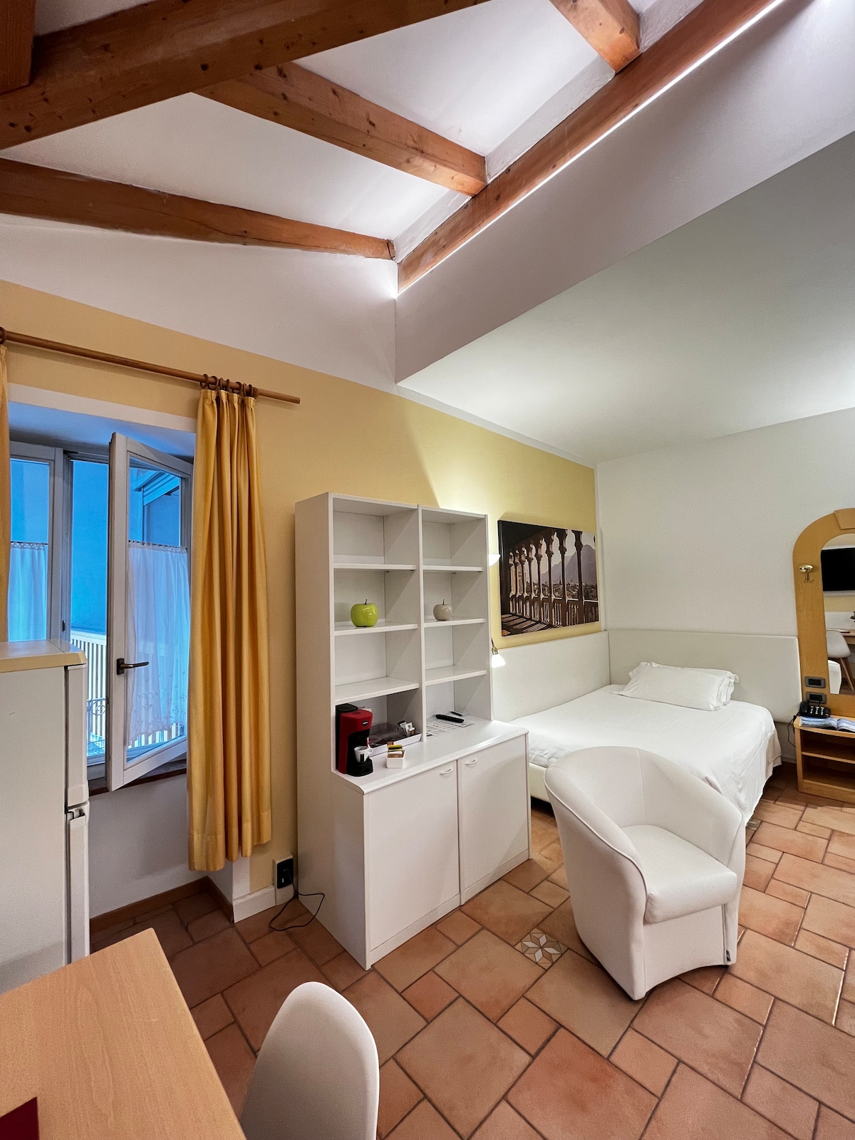 Comfortable studio apartment on the first floor of a small condominium with a splendid view of the Plose. Relax in this centrally located quiet space, featuring a comfortable veranda. A few minutes from the historic center, near the train and bus station, free parking on site. Equipment: lift, double bed, baby bed, large wardrobe, kitchen with oven, microwave, coffee machine, toaster, juicer, fridge, freezer, TV bathroom with shower cabin and washing machine, iron and ironing board Free Wifi