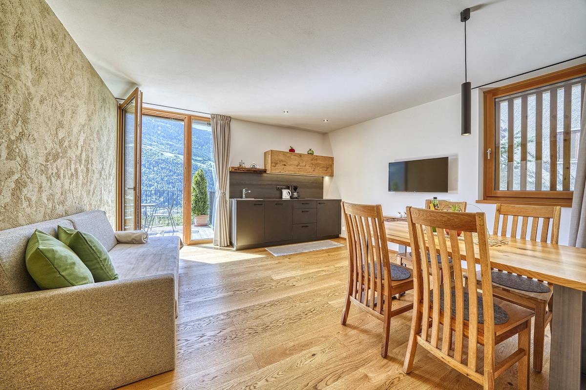 One out of our five delicately renovated apartments located on the last floor of a charming, characterful farmhouse. It is one of the oldest buildings of a cosy little village in the Valle d’Isarco in Northern Italy. We find ourselves right in the center of sun-blessed South Tyrol, on a hilltop at the entrance of the Gardena and Funes valleys. Close to the dolomites mountains but not far away from the popular towns of Bolzano and Bressanone it is an ideal starting point to explore the region.