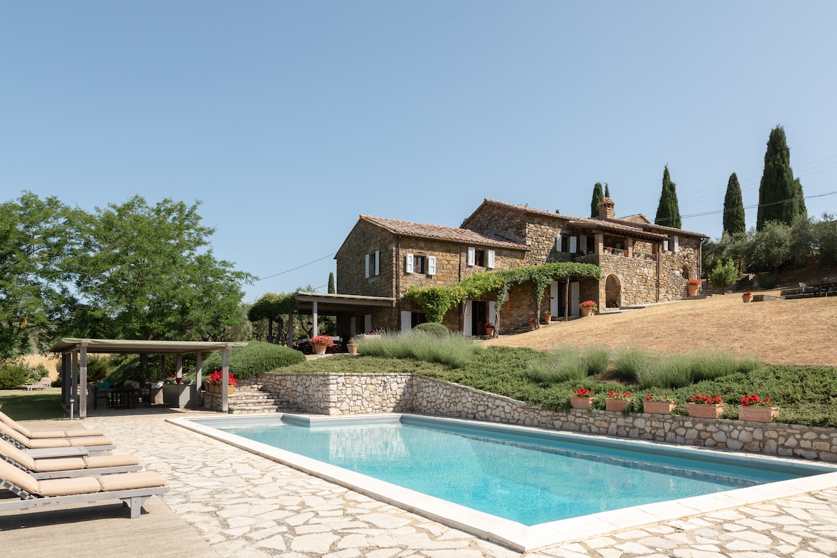 Nell’affascinante campagna Toscana,tra ulivi e vigneti una villa in pietra,in posizione strategica per cogliere i segreti di Toscana e Umbria aria condizionata e piscina con area wellness per il vostro relax e confort Villa Senaia è una grande casa con travi in ​​legno, in una splendida posizione in collina con vista idilliaca che affaccia su uno dei luoghi preferiti della campagna toscana, un ambiente attraente per mangiare all'aperto, bevendo vino toscano e ascoltando i grilli e le cicale