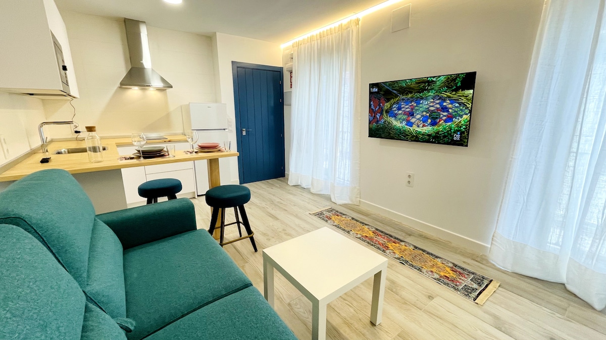 Apartamento nuevo y decorado con estilo en calle peatonal del centro histórico. A 1 min de la Catedral y Ayuntamiento, y a 3 min de la Alcazaba. Cuenta con 1 habitación, sofá cama italiano, cocina equipada, baño moderno, Wi-Fi, aire acondicionado y Smart TV. Entrada autónoma con código. Plaza de parking privada a 2 min. Ideal para turistas, parejas o viajes de trabajo. Todo lo necesario, ¡a un paso!