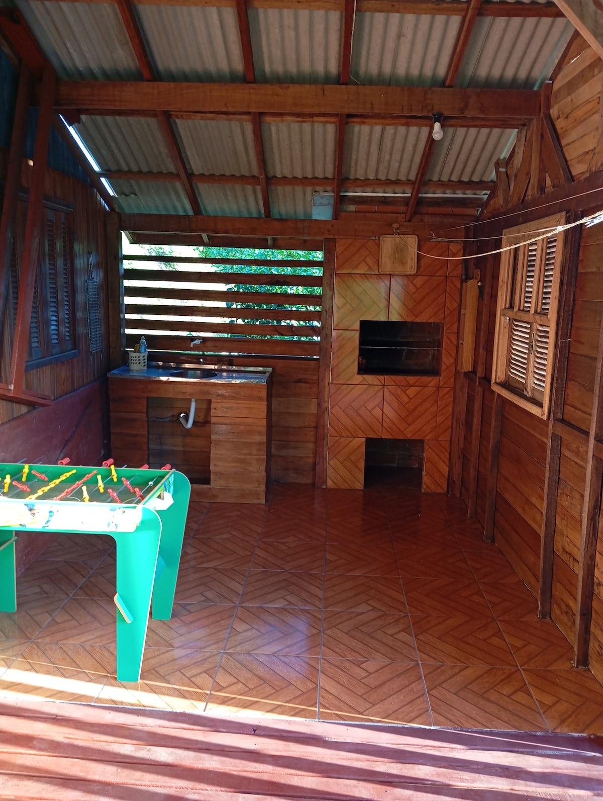 Chalé de madeira para você e toda sua família, com muito espaço para as crianças se divertir. Tenha uma experiência incrível com esse local rodeado de árvores, clima agradável para você descansar se conectando com a natureza em momentos de paz e tranquilidade. Fornece conforto com fogão a lenha, redes para relaxar, deck no pátio, fogueira. 2 quartos, 1 banheiro, sala com TV e cozinha (completa com louças e eletrodomésticos), WIFI. Área externa com churrasqueira e mesa de bilhar. À 1km da RS-115.