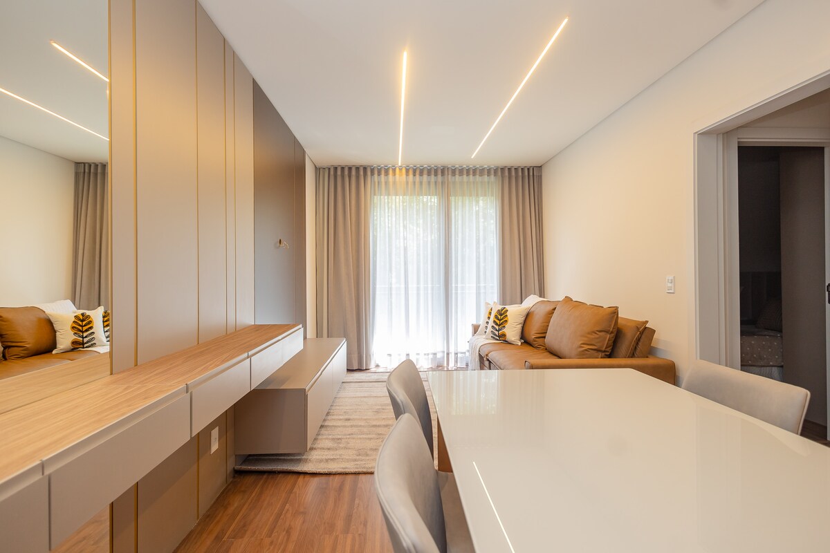 A Cabana Esquina 17 possui acesso por rampa e estacionamento aberto em frente. Oferece duas banheiras aquecidas (no deck externo e no banheiro interno). Na parte superior, cama king size, TV e poltrona para leitura. Na parte inferior, cozinha completa com airfryer, frigo-bar e micro-ondas, além de uma cama auxiliar sob a escada, ideal para relaxar. Na área externa há um balanço namoradeira e espaço aconchegante para fogueira, proporcionando momentos únicos de tranquilidade em meio à natureza!