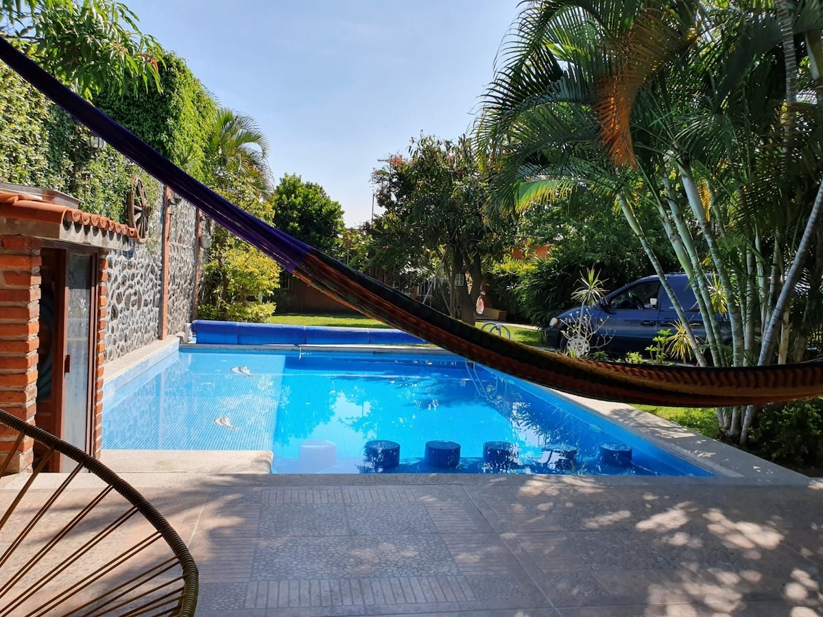 Increible casa al sur de Cuernavaca con hermoso y amplio jardín, alberca y chapoteadero con calefacción solar privados, llega de 20/28 grados en invierno y en verano entre 30/36 grados; reja para seguridad de niños y mascotas. Palapa con smart TV de 55”, con asador, horno y amplios espacios para que puedas disfrutar con familia y/o amigos. Estacionamiento privado para 5 autos. Baños con iluminación natural y baño principal con Jacuzzi privado. Ven a relajarte y disfrutar del clima y naturaleza