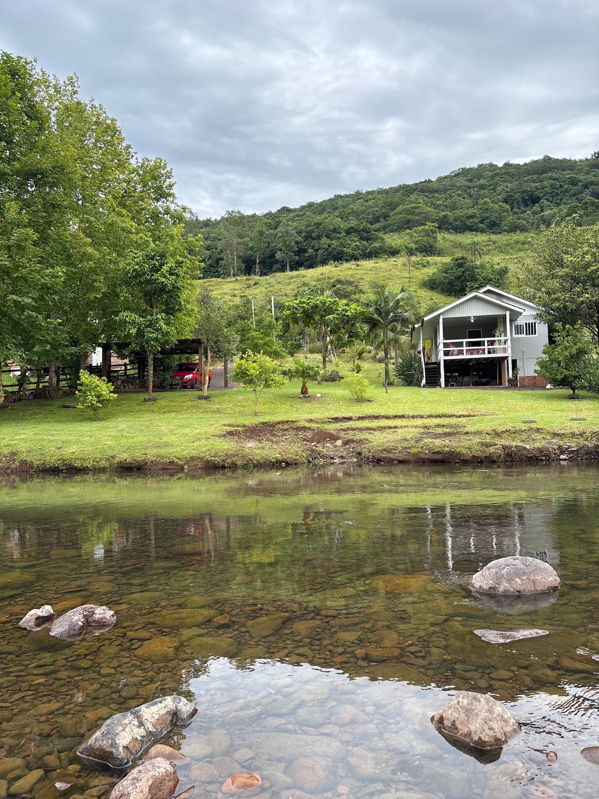É uma casa unica com acesso exclusivo para o Rio Maquiné, ideal para um final de semana com a familia, localizada no 3º pavimento conta uma varanda com vista panorâmica da natureza, uma grande mesa para reunir a familia ao lado da churrasqueira. cozinha com equipamentos, geladeira, cooktop e forno, living integrado, 2 espaçosos quartos e um banheiro.Localizada a 3,6km (4minutos) do centro de Maquiné, conta com acesso todo asfaltado e fica a caminho dos principais passeios. @memoriasdoengenho
