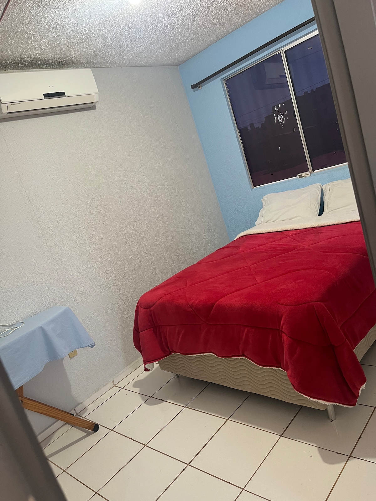 Se você busca um lugar simples, limpo e acolhedor para descansar, O espaço inclui: 2 quartos com cama de casal confortável Sala com sofá, TV e ambiente agradável para relaxar. Cozinha funcional com geladeira, fogão e utensílios básicos, máquina de lavar. Banheiro com chuveiro quente, Wi-Fi,Ar condicionado,Ventiladores, roupa de cama. Condomínio simples, popular, familiar. Estacionamento dentro do condomínio (não coberto). Tudo é preparado com atenção para garantir que sua estadia seja tranquila.
