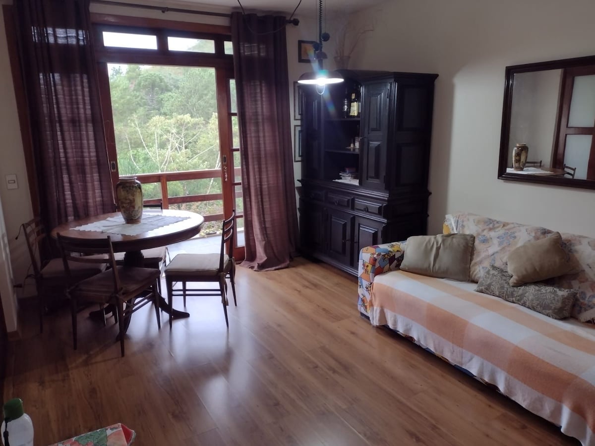 Apt aconchegante (até 8 pessoas). 1º andar: sala estar, sala jantar, cozinha americana c/ fogão indução 2 bocas, micro-ondas, geladeira, air fryer, torradeira, sanduicheira, liquidificador, louças, panelas, travessas, cafeteira convencional, Nespresso, filtro de barro, 1 quarto (cama queen, cômoda, split) e 1 banheiro. 2º andar: 1 quarto (2 camas de solteiro e 1 sofá-cama, que acomoda até 2 crianças, split), banheiro, armário + 1 suíte (cama queen, armário, banheiro, ar condicionado portátil)