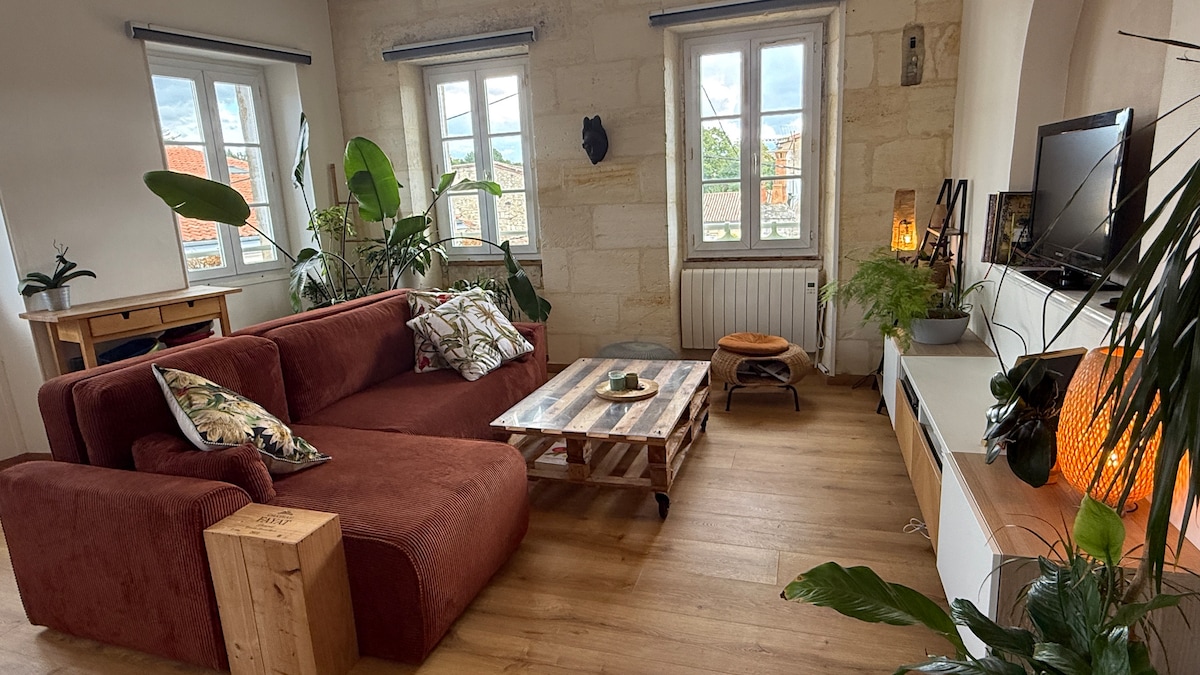 Venez découvrir les charmes de Bordeaux dans notre appartement climatisé au coeur du centre historique dans une ambiance cosy. Fonctionnel et agréable , vous y passerez un séjour inoubliable!! A moins d'une minute à pieds de la Porte Cailhau ,à 300 mètres de la place de la Bourse. Ce quartier est un choix idéal pour les voyageurs qui s'intéressent à ces thèmes: nourritures, le shopping, visite et le vin. L'appartement ainsi que le linge est désinfectés entre chaque séjour .