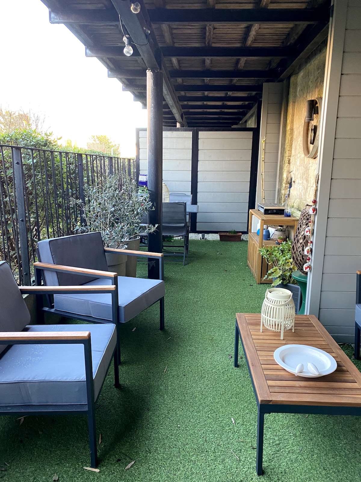 A few minutes from Bordeaux on foot or by transport, come and relax in this calm and elegant accommodation. Ideal for tourism or teleworking :) The apartment offers a comfortable living space with a private terrace and a plancha for your outdoor meals on sunny days. You will be in the heart of lush vegetation not overlooked. The tennis court is accessible at any time with the key. The apartment offers easy access to local amenities, public transport.