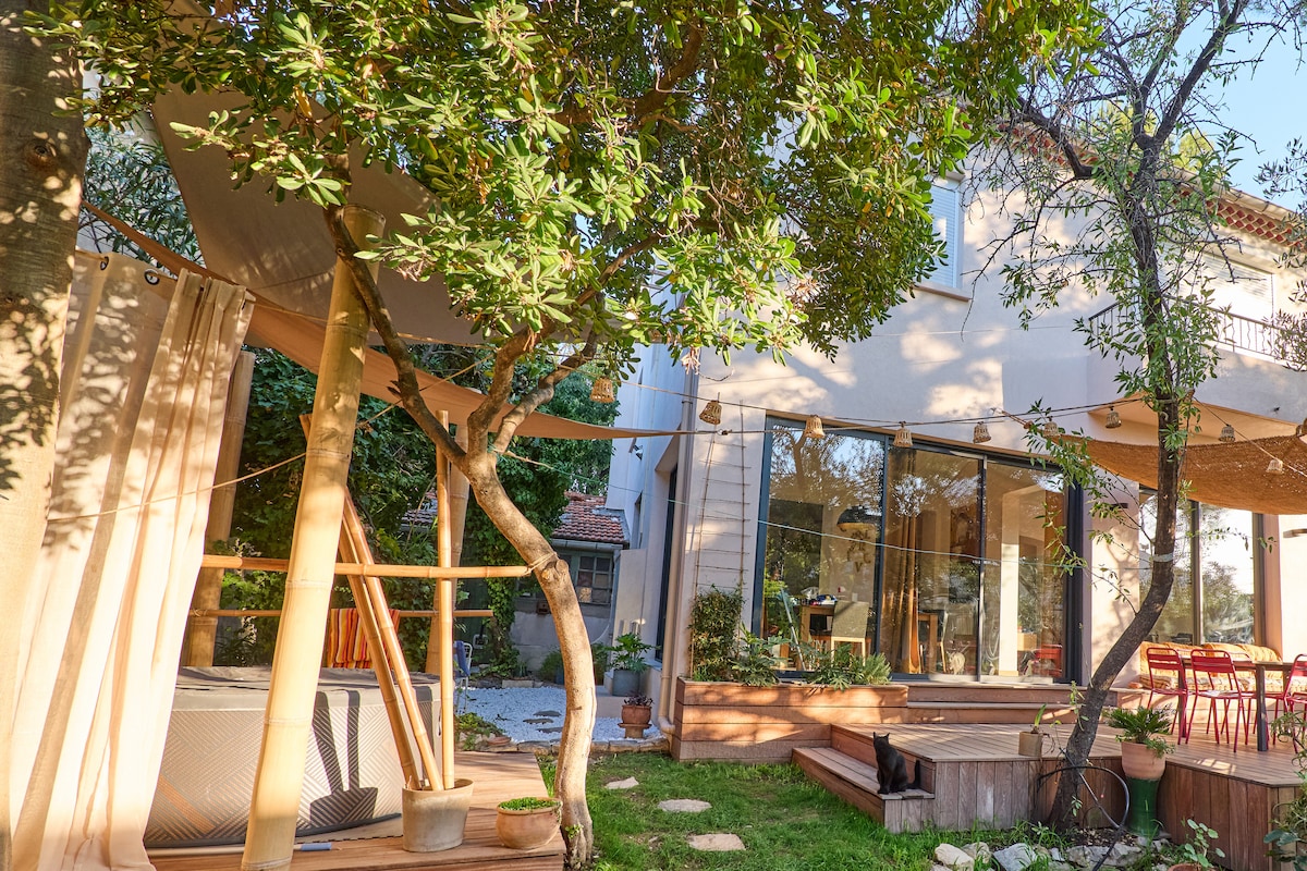 Maison située sur notre propriété de 6000m2 sur les hauteurs de Trets. Nous habitons sur place mais la terrasse et une partie du jardin sont privatives et sans vis-à-vis. Environnement très calme, au cœur de la verdure. Dans le jardin, accès partagé avec une 2ème maison : terrains de sport et jeux (pétanque, basket, foot, tyrolienne, trampoline, balançoire, château, crossfit). Connexion fibre. Accès à la piscine sur réservation (50€/demi-journée : 8h/12h ou 14h/18h). FÊTES STRICTEMENT INTERDITES