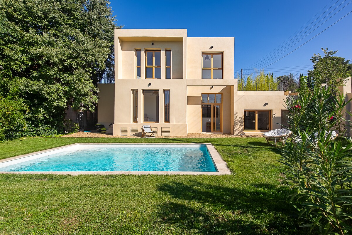 Au cœur d’Aix en Provence, à quelques mètres du relais et châteaux Le Pigonnet, et proche de la place de la Rotonde, à pied. Villa d’architecte neuve avec grande cuisine et large salon et patio, 1 suite parentale, 2 chambres doubles, 1 chambre simple, 1 bureau isolé, 1 belle salle de jeu avec ping-pong, 2 grandes salles de bain doubles et 3 WC. Villa climatisée, baignée de lumière, au calme absolu, avec sa belle piscine chauffée et 2 places de stationnement, au cœur d’un jardin paysagé.