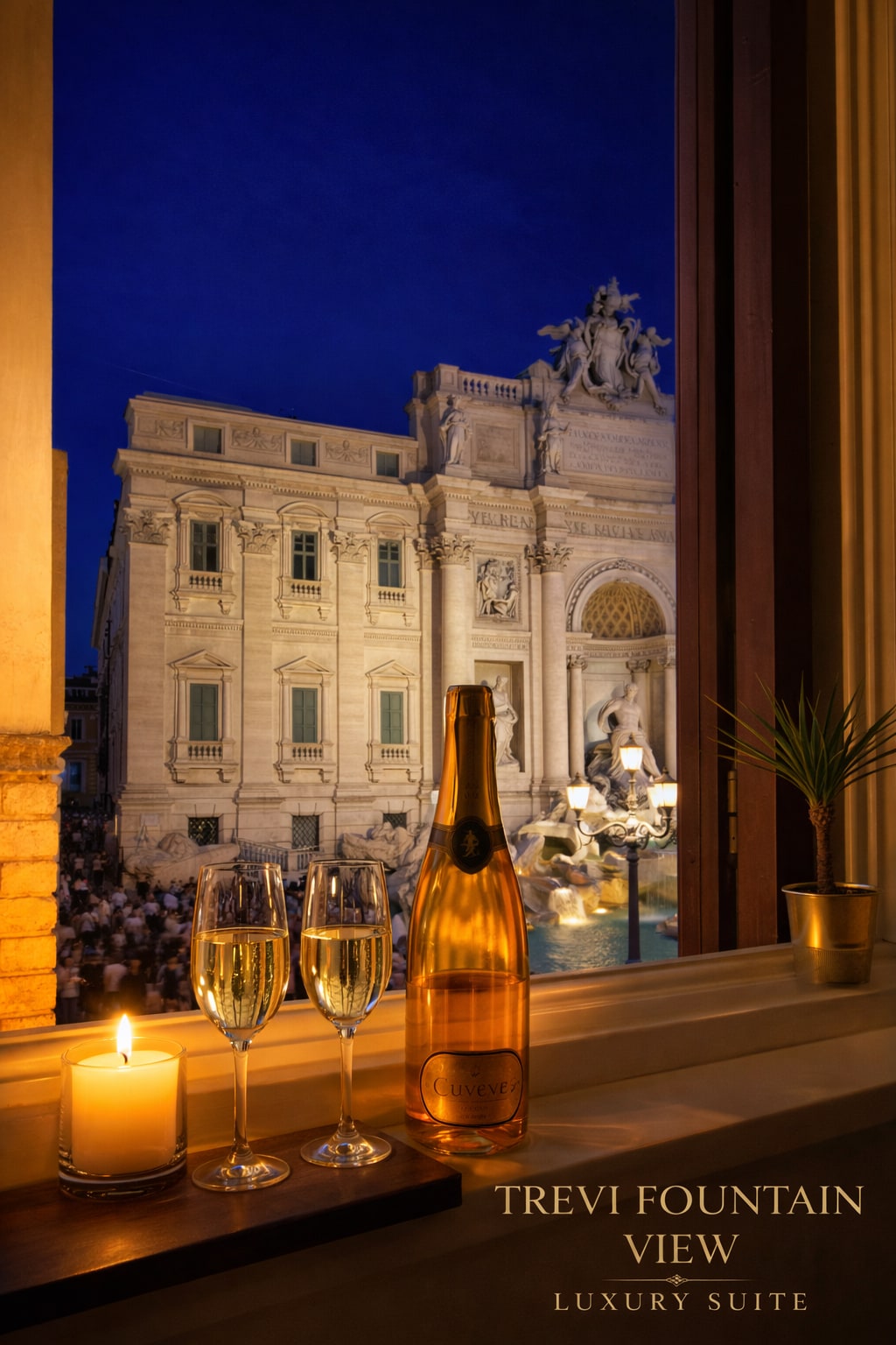 Wake up to the Trevi Fountain right outside your window — one of the rarest views in Rome. Enjoy the fountain in total privacy, away from the crowds, with a glass of wine or morning coffee. Perfect for couples and special occasions, this elegant suite offers refined interiors and unforgettable moments. Return at night to your private view — when Trevi becomes truly magical. A once-in-a-lifetime stay.