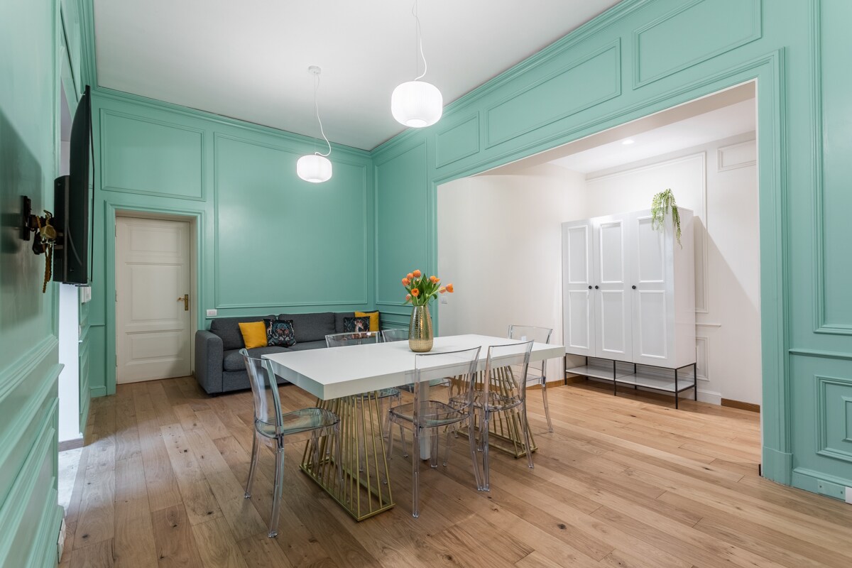 Colourful newly renovated apartment with a vibrant artistic atmosphere, only 2 minutes walking from Termini station and 5 minutes from Repubblica metro station. You will find everything you need during your stay: a fully equipped kitchen with fridge, microwave, washing machine and dish washer; a cozy bathroom with a big shower cabin; a large bedroom with a king size mattress; a sofa bed that can host 1 additional guest; air conditioning, TV and a working gramophone.