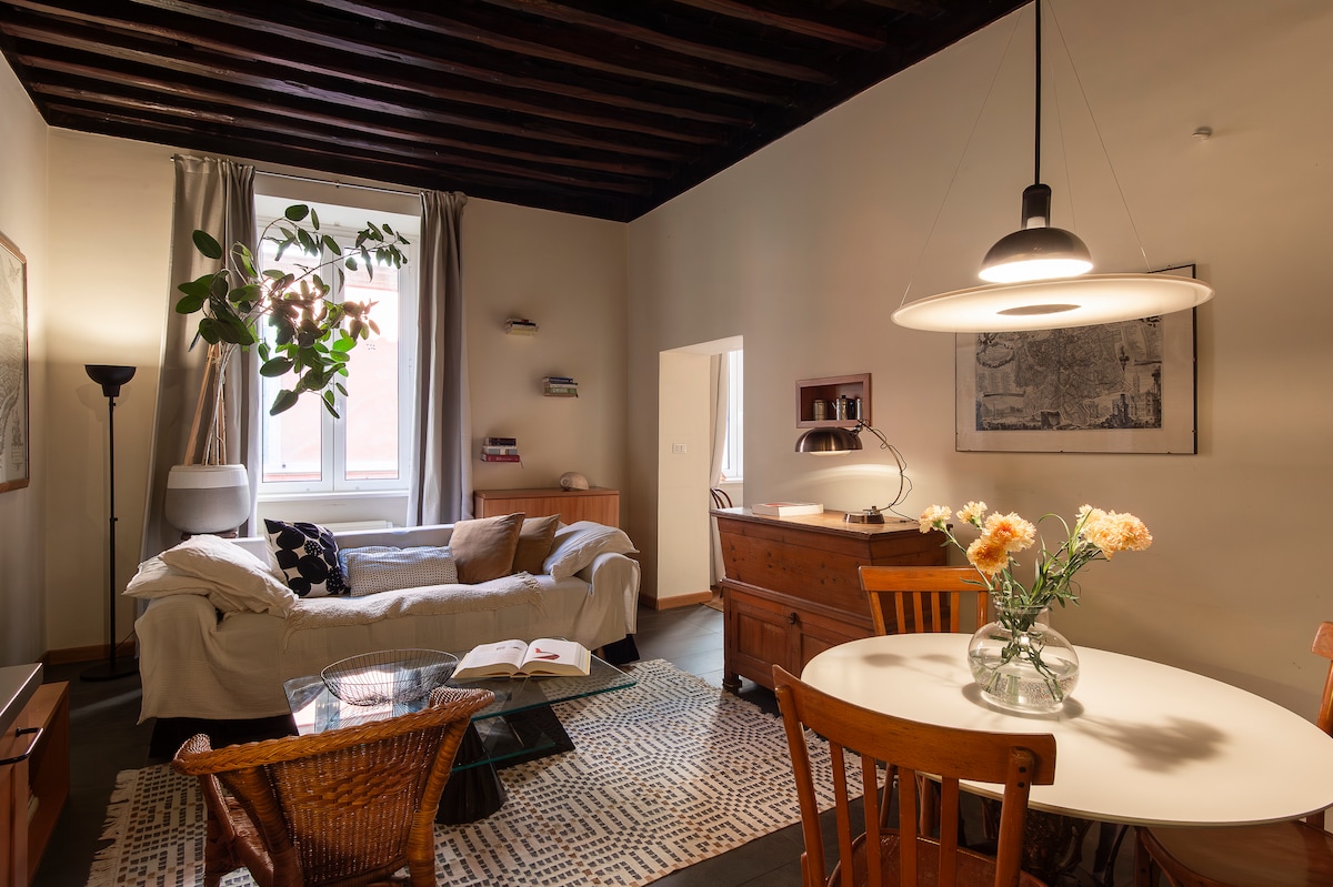 Rome, historic center,in the heart of the city, 200 meters from Piazza Navona and 3 minutes from Trastevere, very close to Campo di Fiori and Piazza Farnese, Elegant attic 170mq + terrace very bright and quiet,.The central position allows you to reach on foot and in a few minutes : Piazza Navona, the Pantheon, Piazza Farnese,Trastevere, Trevi Fountain, Spanish Steps and the shopping streets, the Colosseum, and the most important archaeological sites and major museums and major monuments.
