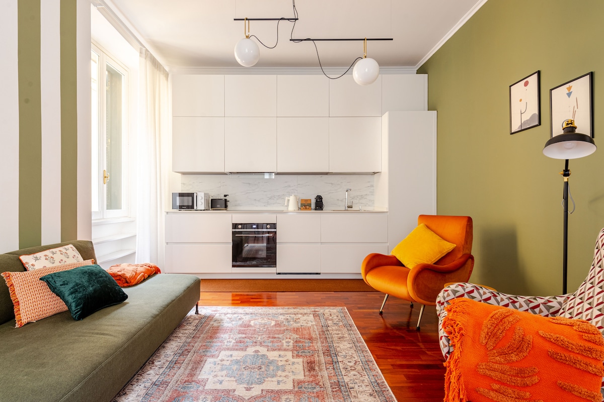 Apartment with one bedroom with king size double bed, living room with double sofa bed, one bathroom and a fully equipped kitchen, near the Colosseum. Modern and completely renovated for 3 people. This is a Green solution: 100% renewable energy, fully LED lighting, green cleaning products, eco-friendly Airlite wall paint, eco-friendly soaps and ethical finance. Connected and close to monuments and services. Comfort and professional cleaning for a wonderful holiday!