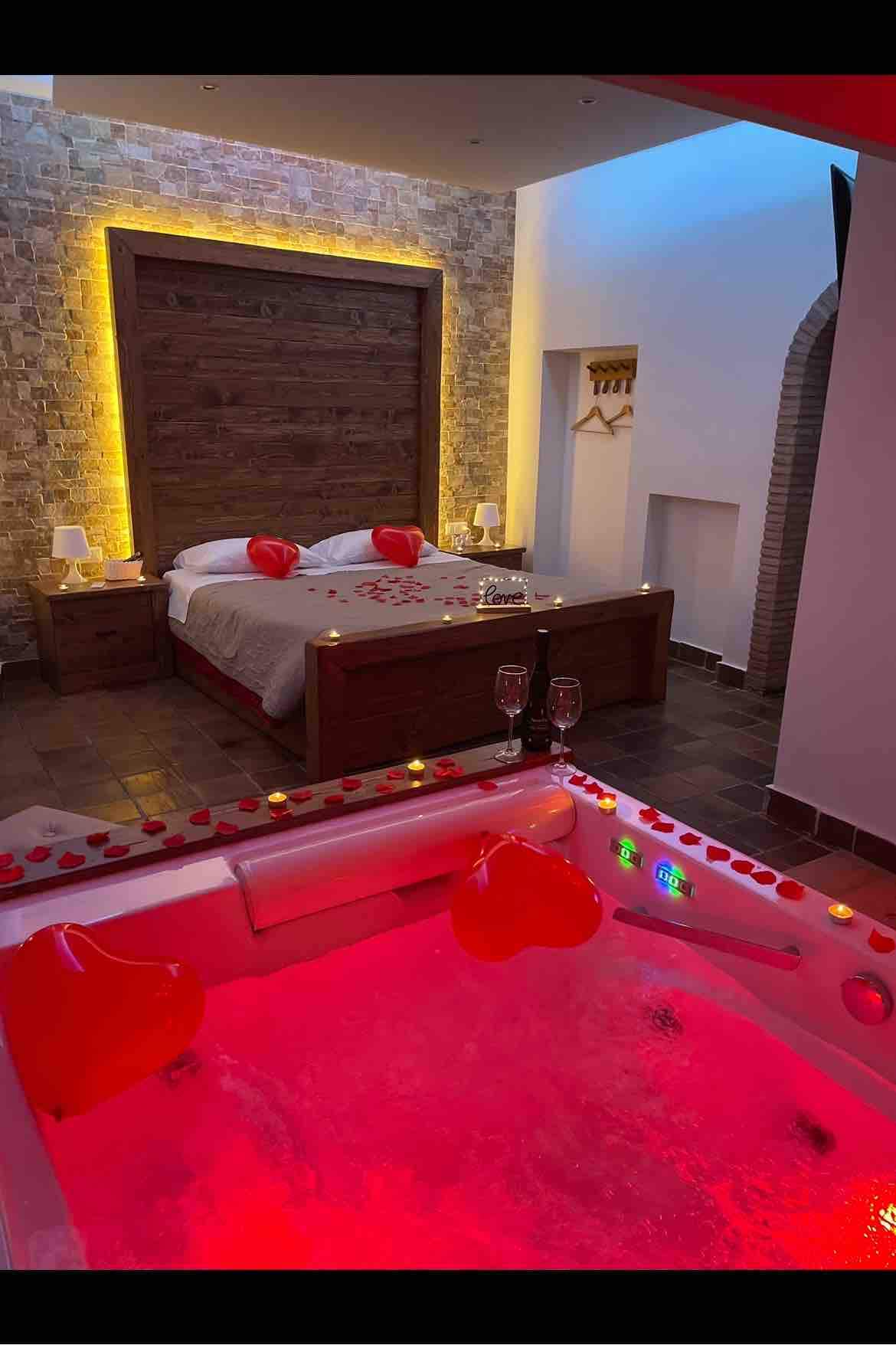 按摩浴缸套房 村庄里的小屋