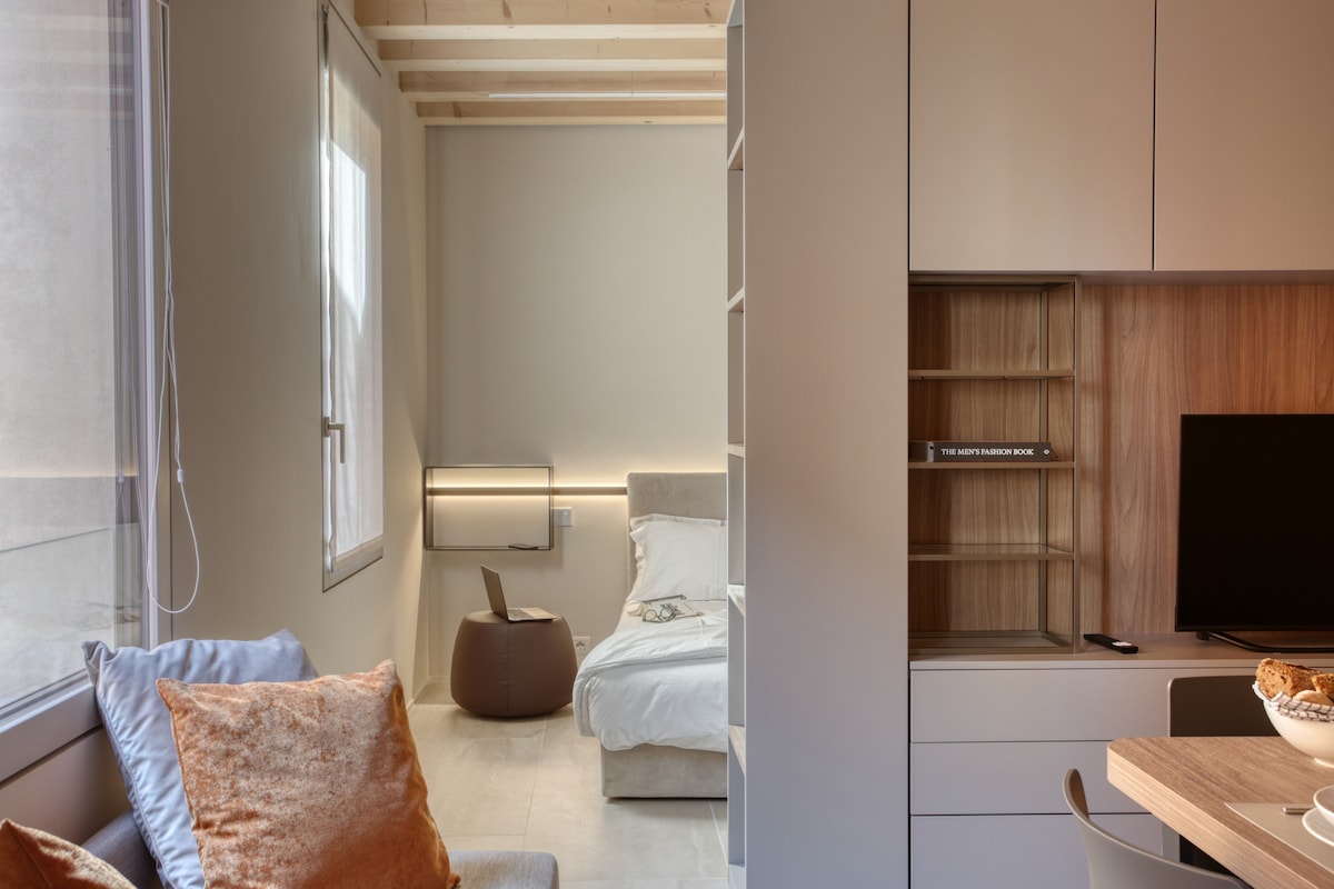 Apartment composed of large living area with kitchen and living room, double bedroom and bathroom. The sofa in the living room can be transformed into a double bed. Located in the historic center convenient for visiting Venice in a few minutes by train. The apartment is equipped with every comfort for your holidays or for those who have to stay in the city for work. Located 1 minute walk from Piazza Duomo Tourist tax of 4 euros per day per guest to be paid online