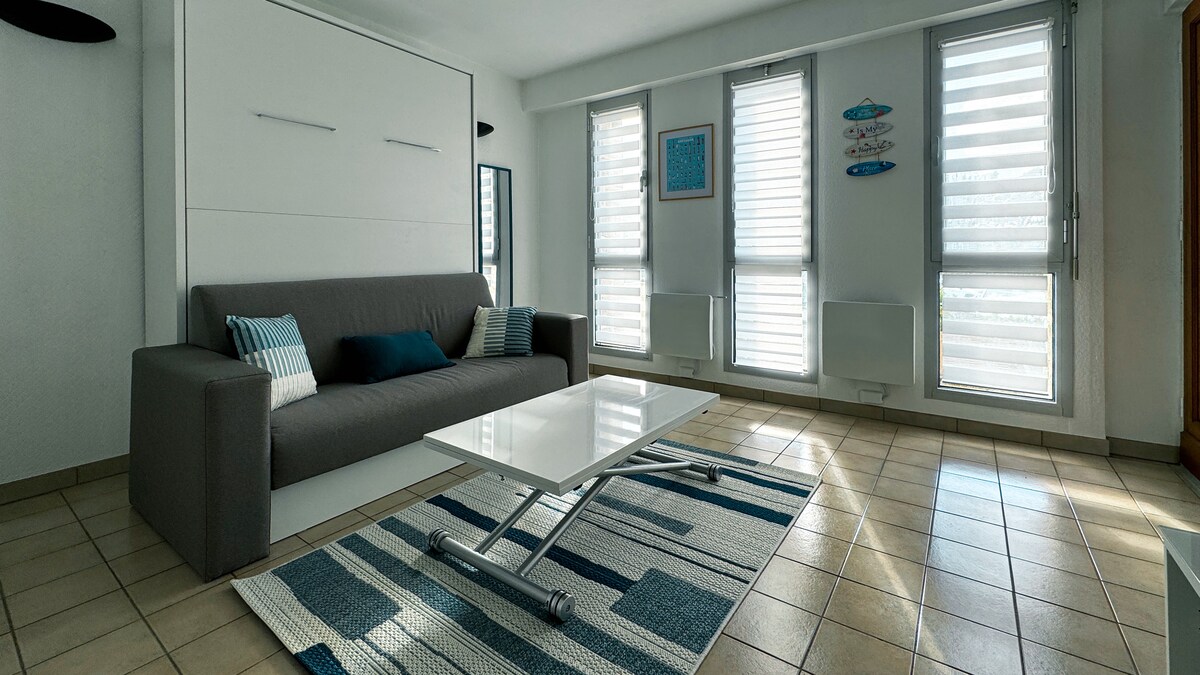 Cet appartement est un duplex inversé, lumineux situé dans une résidence calme face à la magnifique plage de sable fin de Trestel, non loin de la Côte de granit rose, des 7 Îles, de l'île de Bréhat sur la commune de Trévou-Tréguignec. Au rez-de-chaussée se trouve la pièce de vie avec un espace cuisine. A l'étage inférieur se trouve la chambre, la salle de douche et les lits cabines superposés.
