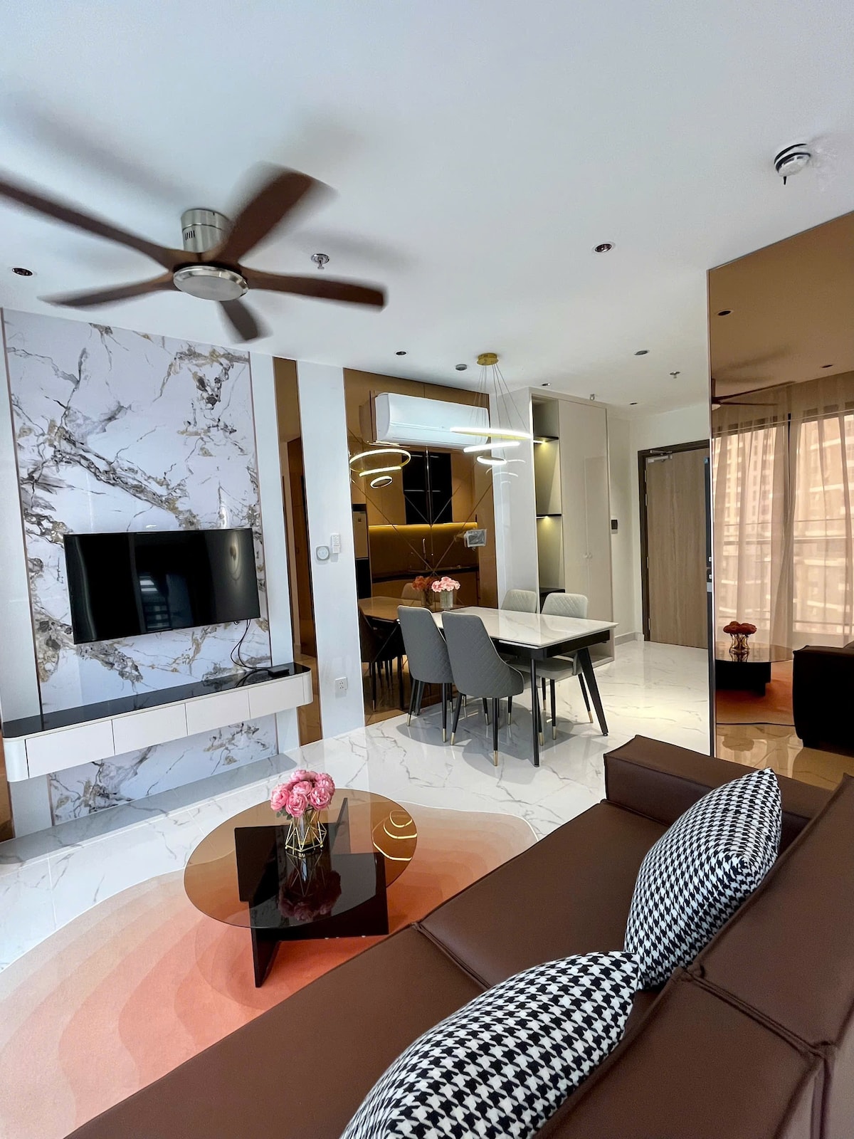 - Phong cách thiệt kế hiện đại 5* - View thoáng - Nội thất Luxury + Giường Super King 2mx2m2 + 2Tv 55" & 43" + Netflix 4K + Loa soundbar + Máy phun sương + Bàn ăn & uống trà nâng hạ + Nước suối, Cafe + Quạt không cánh + Tủ đồ, Đôn ngồi, Bàn trang điểm, Máy nước nóng, Wifi, Bếp âm, Tủ lạnh, Máy Giặt, Lò nướng & vi sóng + Nghe nhạc Youtube ko quảng cáo - Vị trí trung tâm cách Vincom Megamall & Quảng trường nhạc nước vài bước chân - Yên tĩnh nghỉ ngơi thử giãn và làm việc khi công tác