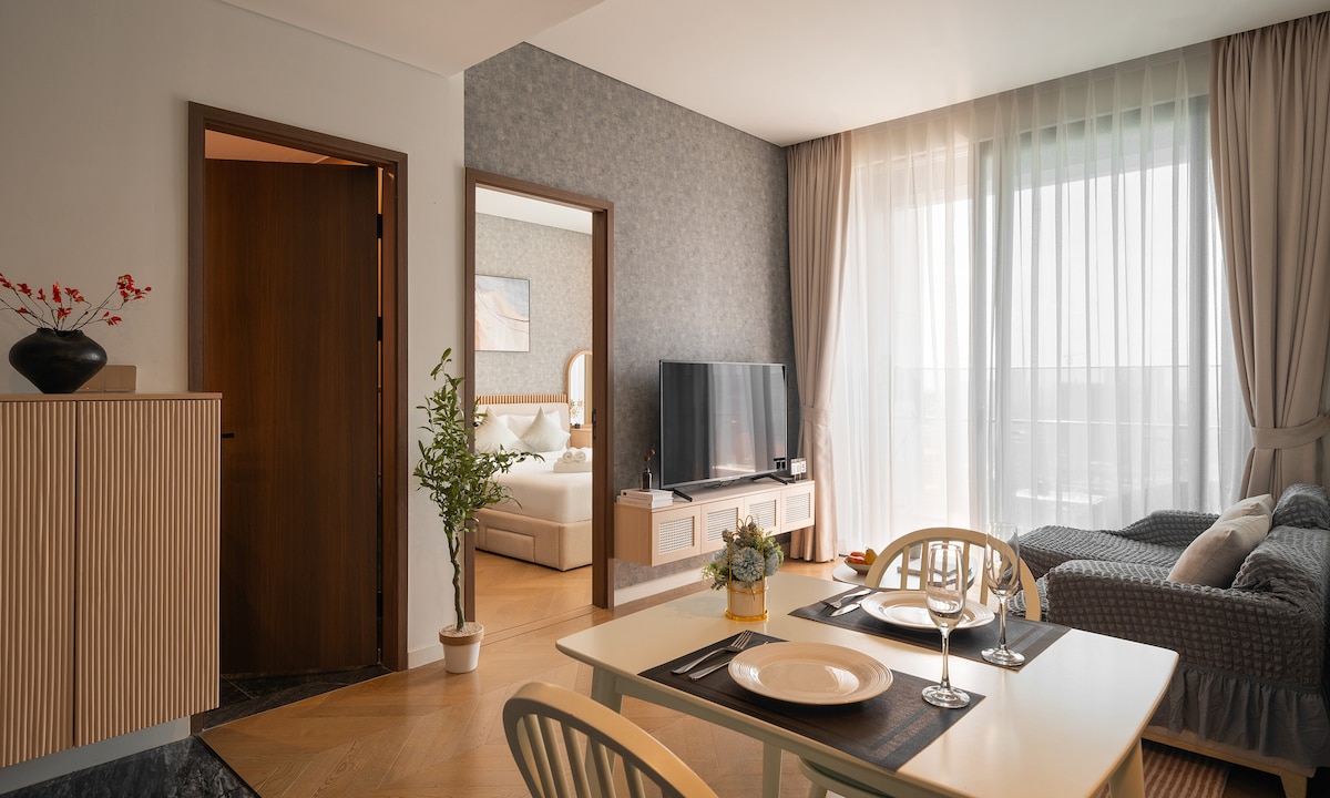 Experience riverside luxury in Vinhomes Grand Park. Wake to serene river views in this stylish 1BR apartment. Perfect for business travelers and couples seeking modern comfort with boho elegance.