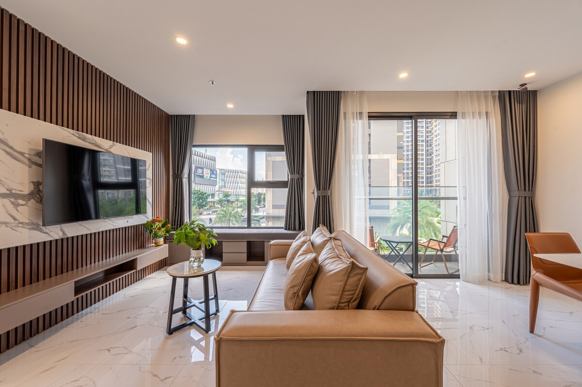 Căn hộ 2PN GH5 – Vinhomes Grand Park sở hữu không gian sống hiện đại, yên tĩnh giữa đại đô thị xanh. Thiết kế tối ưu công năng với đường nét tinh giản, mang lại cảm giác ấm cúng và tinh tế. Phòng khách thoáng sáng kết nối bếp tiện nghi, hai phòng ngủ riêng tư bố trí khoa học. Nội thất tông màu nhã nhặn kết hợp ánh sáng tự nhiên, tạo nên tổng thể sang trọng và dễ chịu.